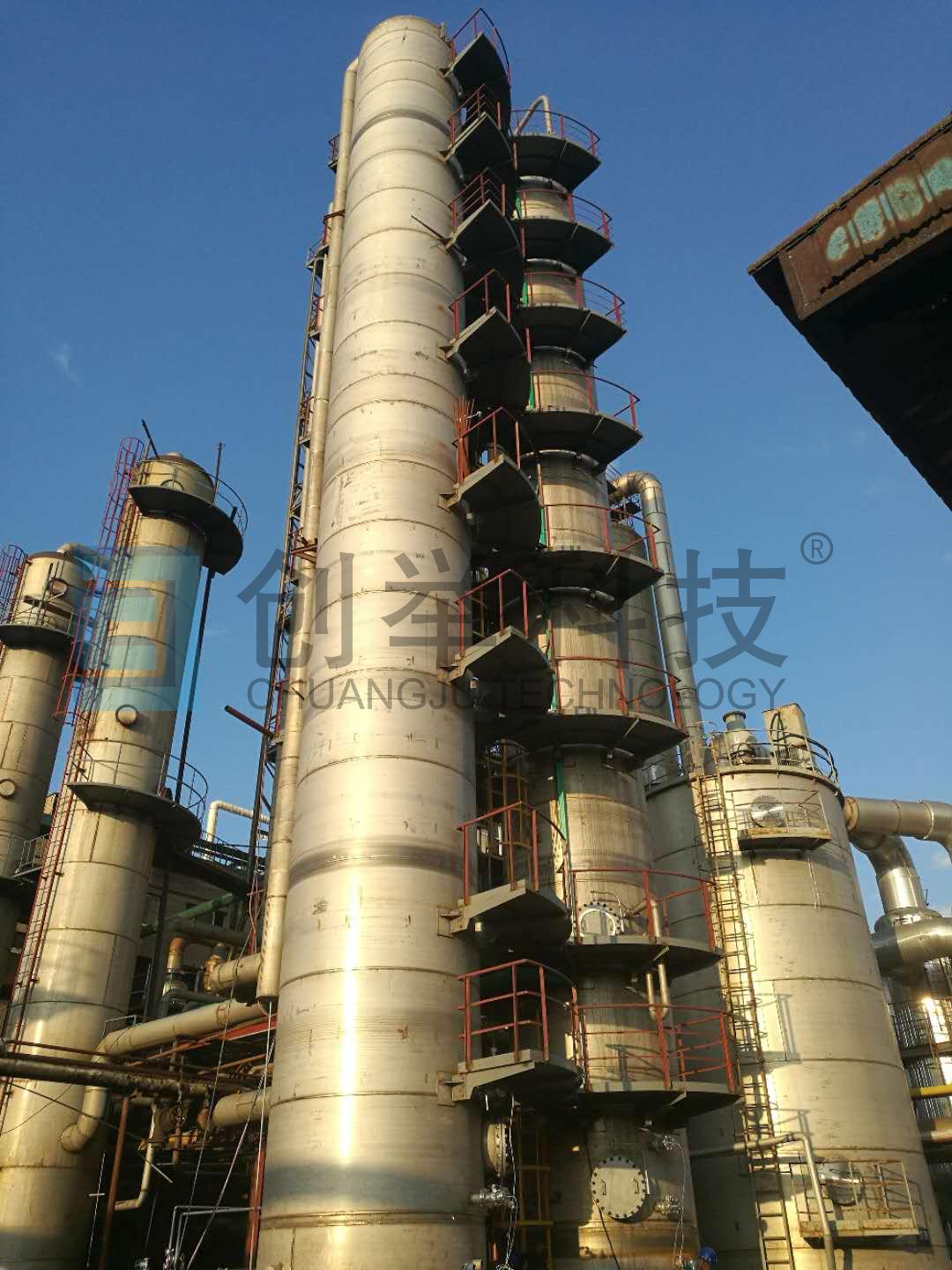石家莊某公司DN1800硝酸吸收塔,原設(shè)計為篩板塔,正常生產(chǎn)時塔釜硝酸濃度只有30%左右。因尾氣資源化回收改造需濃度40%以上硝酸,創(chuàng)舉公司為其量身定做復(fù)合移熱噴射塔內(nèi)件,開車一次成功。
