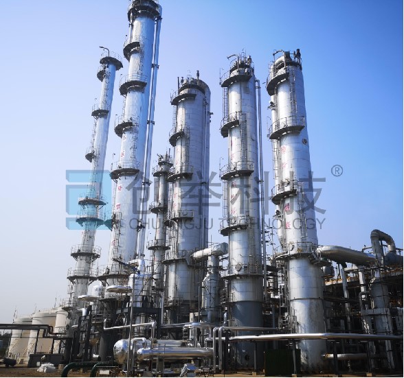 “五塔三效”甲醇精餾熱耦合工藝包技術(shù),原雙效精餾技術(shù)的延伸,主體設(shè)備增加一個(gè)加壓塔或負(fù)壓塔。是由前一個(gè)塔塔頂氣相作為后一個(gè)塔再沸器的熱源,比原雙效精餾技術(shù)多了一效,可進(jìn)一步節(jié)能。噸甲醇的蒸汽耗量可以由雙效的1.1~1.2降低到0.8~0.9,而且產(chǎn)品質(zhì)量高。該流程具有技術(shù)可靠、處理能力大、產(chǎn)品質(zhì)量高、噸甲醇蒸汽耗量低等優(yōu)點(diǎn)。特別適合于現(xiàn)有裝置的擴(kuò)能改造。