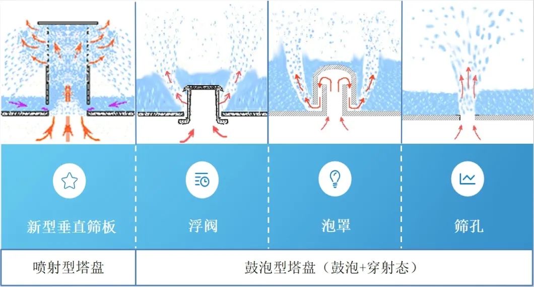 塔器按塔內(nèi)件結(jié)構(gòu)可分為板式塔和填料塔。塔板是板式塔傳質(zhì)分離的核心部件,按氣液接觸傳質(zhì)形態(tài)劃分可分為鼓泡型塔板和噴射型塔板。