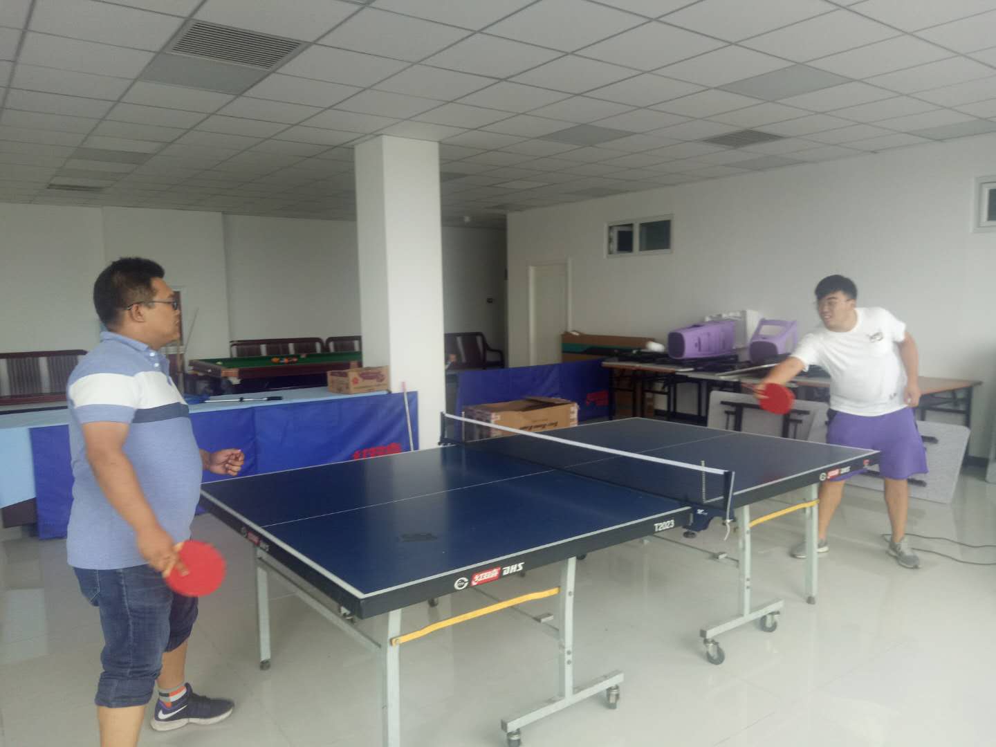 有的員工正在進(jìn)行單打,你來(lái)我擋,直拍、橫拍、扣球、旋轉(zhuǎn)球、弧線球,熱鬧非凡。大家不僅提升了球技,更鍛煉了身體。