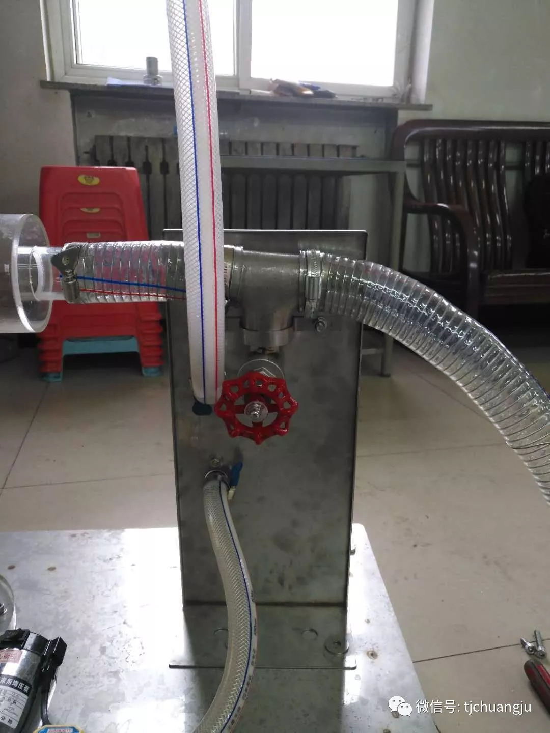 這是展會或行業(yè)會議展示專用的有機(jī)玻璃塔,配有水泵和風(fēng)機(jī)。