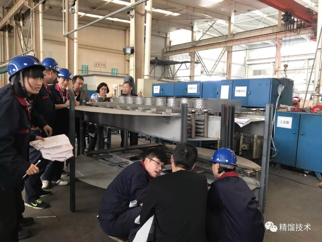 由于在實際生產(chǎn)中發(fā)現(xiàn)原塔盤壓降較高,故創(chuàng)舉公司本著對客戶負責(zé)的態(tài)度集思廣益,重新對原復(fù)合移熱塔盤進行改進,在實現(xiàn)高效傳質(zhì)和傳熱同時進行的前提下,降低塔盤壓降。新塔盤設(shè)計完成后,為了提早發(fā)現(xiàn)在塔盤安裝過程中可能存在的問題,設(shè)備廠預(yù)制兩層等比例的新塔盤,邀請浙江瀚普一行領(lǐng)導(dǎo)來創(chuàng)舉設(shè)備廠進行考察,公司董事長王柱祥和常務(wù)副總商恩霞帶領(lǐng)工藝部、設(shè)備部、工程部相關(guān)技術(shù)人員同時陪同,及時發(fā)現(xiàn)新塔盤結(jié)構(gòu)中的缺點并進行優(yōu)化。充分體現(xiàn)了敬業(yè)、進取、創(chuàng)新的創(chuàng)舉精神。