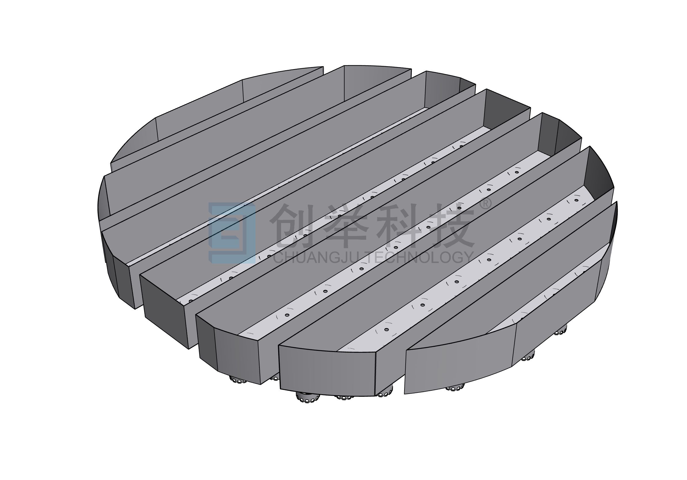 (1)既能收集上段填料落下的液體又能將液體再次均勻分布,同時(shí)通過對(duì)稱式設(shè)計(jì)使上升的氣體得到均勻分布。